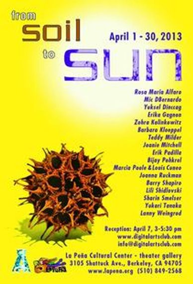 You are all invited to come and see From Soil to Sun, an art exhibition of 17 artists from the Digital Arts Club of Berkeley City College.